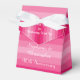 Was für eine wunderschöne, personalisierte Gastgeschenk Box für einen 40. Hochzeitstag oder andere Anlässe. Diese Gefallen Box ist mit einem Muster aus rosa Streifen dekoriert. Auf der Vorderseite Name und Veranstaltungstitel in weiß. Auf der Vorder- und Rückseite "Danke für das Feiern mit uns" (oder Ihren eigenen Text). Ein weißes Band rundet das festliche Aussehen ab. Eine moderne, elegante und schicke Hochzeitsjubiläumsbox. Alle Rechte vorbehalten © 2015 Alan & Marcia Socolik.
