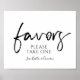 City Script Kalligrafy Wedding Sign - Favors (Black & White): Dieses moderne Script Hochzeitszeichen ist perfekt, um auf Ihrer Gastgeschenk Hochzeit Display-Tisch. Das Design ist schwarz, aber man kann die Farbe auf alles ändern, was man will! **WÄHLEN SIE IHRE EIGENE FARBE: 1) Klicken Sie auf "Anpassen" oder "Anpassen" oder "Bearbeiten". 2) Wählen Sie eine neue Hintergrundfarbe aus.