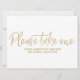 Ein stylischer Handschrift Bitte nehmen Sie ein Gastgeschenke Hochzeit-Schild mit der Beschriftung: _________________________________________________________________________________________________ Das Gold ist keine reale Folie, es ist ein digitaler Effekt. Dies ist ein 6,5" x 8,75" Zeichen, klicken Sie auf die Schaltfläche "Anpassen" können Sie Zugang zu den Designtools, um die Größe und Form zu ändern, auch können Sie eine Hintergrundfarbe hinzufügen. Um dieses Zeichen mit Ihrem Hochzeitsstil zu verbinden, können Sie zwischen 12 verschiedenen Möglichkeiten wählen. Für ein rustikales Gefühl nutzen Sie die künstlerische Kraft, um einige Gläser mit dem Perlenschimmer hinzuzufügen. ________________________________________________________________________________________________________________________________________________________________________________________________________________________________________________________________