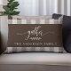 Fügen Sie Ihrer Zuhause eine einladende Touch mit diesem Gather Fall Brown & White Buffalo Karo Lumbar Kissen hinzu. Dieses Kissen mit klassischem Buffalo-Karo-Design und dem Wort "Versammlung" und individualisierbarem Familiennamen ist ideal für eine gemütliche und einladende Atmosphäre in Ihrem Wohnzimmer, in Ihrem Eingang oder im Schlafzimmer. Dieses Kissen eignet sich ideal für Herbst, Erntedank oder das ganze Jahr über und bringt Wärme und eine personalisierte Touch in jeden Raum.