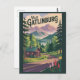 Gatlinburg Retrovektor Reise Design. Gatlinburg ist eine charmante Bergstadt am Tor zum Nationalpark der Großen Smoky-Berge, bekannt für seine landschaftliche Aussicht, gemütliche Hütten, Wanderwege und Familienattraktionen.