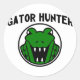 Einfach gezahngrüner Gator in einer runden, schwarzen Kontur, der im lustigen südlichen Schriftart ein Symbol mit den Worten "Gator Hunter" oben kreiert.