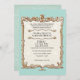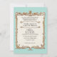 FARBE PALETTE: azurblaues Aqua, Creme und Imitat goldenes Metall-Look. DESIGN COLLECTION: Dies ist ein passendes Probe Dinner, Groom's Parents Dinner Party Ankündigung Einladung. Dieses Set ist ein Hochzeitsempfang, in dem alle Elemente enthalten sind, die Sie für die Gestaltung Ihrer Hochzeitsfeier benötigen. Audrey Jeanne Roberts hat mit Vintager antiker Kunst-Deco und Jugendstil-Stilkunst dieses glamouröse, goldene Blatt-Aussehen grafisch gestaltet, das aufwändige, goldgelbe "geschnitzte" Ränder mit kurbelnden Blätter zeigt und mit großem blühte um die Grenze wirbelt. Die Rolle ist elegant und elegant. Es gibt auch die Schmucktypografie-Trenner des Druckers. Unter dem Rahmen befindet sich ein weiches, spitzen Hintergrund-Design-Muster in Creme. Dieser Look ist perfekt für ein altes Hollywood, elegantes, raffiniertes Glam Event. Einfache Anpassung des Texts mithilfe der bereitgestellten Vorlagenfelder.