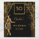 Elegante Imitate Gold und schwarz glamouröse Label für eine Gatsby-Geburtstagsparty in den 20er Jahren, 50. (oder jedes Alter)! Die Einrichtung ist mit einem Flapper-Girl im Stil der 20er Jahre, einem Deko-Stil und einem Feuerwerk gestaltet. Personalisieren und fügen Sie Alter 50, einen Namen und ein Datum. Goldener Text.