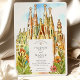 Mit dieser atemberaubenden Hochzeitssuite laden Sie Ihre Gäste zu einem unvergesslichen Fest ein, das das architektonische Genie von Antoni Gaudí in Barcelona zeigt. Die Vorderseite zeigt eine lebendige Aquarelldarstellung der ikonischen Sagrada Família, ihrer majestätischen, in warmen Ockerfarben und Gelbtönen an einem weichen blauen Himmel. Diese Szene wird durch stilisierte orangefarbene und gelbe Tulpen-ähnliche Blume und fröhliche, rosa-orange-farbene Blüten oder kosmos-ähnliche Blüten mit hellgelben Mittelpunkten, eingebettet in üppig grüne Blätter, sehr schön hervorgehoben. Auf der Rückseite, die für "The Finer Details" entworfen wurde, gelangen Sie in die knebelige Welt des Parks Güell. Es zeigt ein faszinierendes Mosaik-Design mit dem berühmten Salamander "El Drac" und fantasievollen, farbenfrohen Turmbauten, die alle in leuchtenden Aquarelltönen in Blau, Grün, lila, Orange und aquamarin gehalten sind und Gaudís "Trencadís"-Technik nachahmen. Eine mutige, orange Blume, die den Blumenakzenten von vorne widerspiegelt. Die gesamte Suite ist ein Zeugnis künstlerischen Ausdrucks, perfekt für eine Hochzeit in Urlaubsort in Barcelona, eine kunsthistorische Veranstaltung, oder für Paare, die den einzigartigen Geist der katalanischen Moderne schätzen und eine Hochzeitseinladung wünschen, die so lebendig und unvergesslich wie ihre Liebe ist.