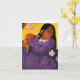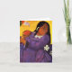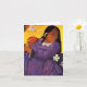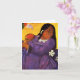 Paul Gauguin Frau mit einer Mango-Notenkarte. Ölmalerei auf Leinwand aus dem Jahr 1892. Gauguin ist bekannt für seine berühmten Bilder von Tahiti und seinen Menschen. Eine Frau mit einem Mango ist eines seiner ausdrucksvollsten Werke. Das Bild zeigt ein Mädchen mit dunkelschwarzem Haar in einem lila Kleid, das leicht lächelt, während sie eine rote Mango in der rechten Hand vor einer gelben Wand hält. Eine kleine Beschriftung lautet "Vahine no the Vi". Ein großartiges Geschenk für Gauguin, Cloisonnism, Tahiti und tropische Malerei.