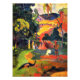 Gauguin Landschaft mit Peacocks Foto drucken. Ölmalerei auf Leinwand aus dem Jahr 1892. Paul Gauguin ist am meisten für seine berühmten Gemälde von Tahiti bekannt. Matamoe, Or Landscape with Peacocks ist eines seiner beliebtesten Werke. Im Vordergrund spazieren die Pfauen, als ein tahitischer Mann Holz an einem Feuer klopft. Im Hintergrund steht eine Hütte mit zwei Frauen, die unter Palmen reden, während der Sonnenuntergang die Landschaft orange, lila, rot und gelb macht. Ein großartiges Geschenk für die Fans von Paul Gauguin, Pfauen, Tahiti, Post-Impressionismus und tropische Kunst.