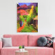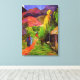 Paul Gauguin Road in Tahiti Leinwand wickeln. Ölmalerei auf Leinwand aus dem Jahr 1891. Gauguin ist ein Künstler, der für seine Gemälde von Tahiti bekannt ist. Die Straße in Tahiti ist ein gutes Beispiel für die lebendige Vision des Künstlers von der tropischen Insel. Zwei Frauen gehen eine rote Schotterstraße hinunter, als ein Pferd auf grünem Gras in der Nähe eines Zaunes grasen. Eine junge Frau sitzt mit Beinen gekreuzt mit ihrem Kinn in ihrer Palme auf der Veranda einer Lehmhütte mit Palmen und lila und roten Bergen im Hintergrund. Ein großartiges Geschenk für Gauguin-Fans, Cloisonnismus, Postimpressionismus und tropische Gemälde.