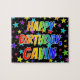 Dieses lebendige und lebendige Jigsaw-Puzzle-Design mit seinem Geburtstag hat die Botschaft "HAPPY BIRTHDAY, GAVIN" mit den Buchstaben mit einem farbenfrohen Regenbogenspektrum, inspiriert Farbverlaufsmuster und einem spannenden Sternenhintergrundmuster. Ein farbenfrohes Rätsel wie dieses könnte benutzt werden, um eine Geburtstagsgrüßbotschaft an jemanden namens Gavin zu senden. [~Z0000468]
