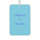 Dieser phantastische Lufterfrischer ist für homosexuelle Männer konzipiert. Es enthält zwei blaue männliche Symbole, die nebeneinander stehend sind. In jedem der Symbole ist ein anpassbarer blauer Text vorhanden, um Namen zu setzen. Auf der Rückseite ist auch anpassbarer Text.