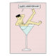 Ein Cartoon, der nichts trägt (außer Sonnenbrille und Lederkappe), sitzt in einem großen Cocktail-Glas-Sprichwort "Happy Anniversary".