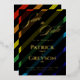 Announce your wedding date with luxurious gold foil elegance. This gay wedding save the date card features bold diagonal rainbow stripes on sophisticated black with stunning gold foil script typography. The premium foil finish adds shimmer and sophistication to your wedding announcement. Perfect for couples seeking unique, personalized wedding stationery that makes an unforgettable first impression. Customize with your names, wedding date, and venue details. Ideal for contemporary gay men weddings and LGBTQ celebrations. Part of our complete Gay Men Wedding Collection.