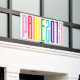 Gay Pride 2019 Typografie in farbenfrohen LGBT-Regenbogenfarben mit Party-Banner, Indoor- oder Outdoor-Banner mit Metallrahmen