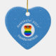 Dunkelhäutige Engel, könnte lateinisch oder asiatisch sein, trägt die Gay Pride-Regenbogenflagge auf diesem herzförmigen Keramik-Ornament, das für Familien mit mehreren Religionen, für Urlaub oder Hanukkah Dekoration entworfen wurde. Der Gay Pride Hanukkah Angel für LGBTQ befindet sich in einem Kreis von weißen quadratischen Quadraten umgeben von einem Hintergrund von blauen quadratischen Quadraten. Fügen Sie einen Namen hinzu, um das Jahr zu personalisieren und anzupassen. Oder fügen Sie Ihren eigenen Text hinzu.