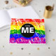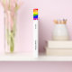 Ein Gästebuch für eine homosexuelle Hochzeit. Tropffarbe in den Farben der Stolzflagge.