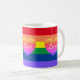 Gay Pride Regenbogenflagge Liebe Kaffee Tasse, mit einem bunten Herzdesign und weiß anpassbaren Text. Ideal, um Ihre Unterstützung für Gleichheit und die LGBTQ-Community zu zeigen.