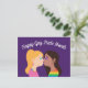Glückliche Gay Pride Month Postkarten mit zwei hübschen Mädchen Küssen. Diese romantische LGBT-Postkarte besticht durch eine niedliche Blondine und eine wunderschöne brünette Frau in einem Regenbogen-Shirt. Passen Sie diese lila LGBTQ-Karte mit Ihrem eigenen Text an.