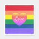 Liebe Rainbow Flag LGBTQ Party Serviette, mit einem farbenfrohen Herzdesign. Mit weißer Schrift können Sie den Text ändern. Ein helles und fröhliches Accessoire zur Unterstützung von Gay Pride und Gleichheit.