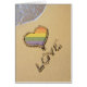Rainbow-Stolz schwulen Liebe Herz .. Liebe im Sand gezeichnet mit dem Wort "Liebe" darunter und die Wellen sanft lappen auf der Küste .. Designer Gay / lesbische Produkte von Ricaso