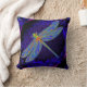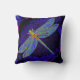 Fantastisches empfindliches, glasiges, Gazeblau u. Goldlibelle auf einem blauen Throwmitternachtskissen für Libellenliebhaber.