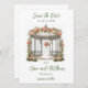 Gazabo themed Hochzeit speichern Sie das Datum Einladungskarten. Personalisiert mit Ihren Vornamen und Hochzeitstermin, um Ihre Gäste wissen lassen, um Ihr besonderes Datum retten.