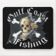 Großer Schädel, der durch schwarze wellenartig bewegende Flagge sprengt. Seien Sie stolz, ein Golfküstenfischer zu sein.