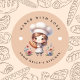 Gebacken mit Liebe Kleinbetrieb Bäckerei Custom Aufkleber. Niedlicher Koch mit frisch gebackenem Brot.