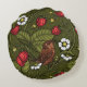 Gebärde und Erdbeeren auf dunkelgrün Rundes Kissen