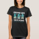 Gebärmutterhalskrebs-Design mit den Worten "Gnome one fights Alone" mit aquamarinen Gnomen. Für jeden, der gegen Gebärmutterhalskrebs kämpft. Kann während des Monats des Krebsbewusstseins getragen werden.