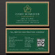 Mit dieser beruflichen Visitenkarte mit einer tiefgrünen und goldenen Farbpalette, die auf einem natürlichen Holzhintergrund verlegt ist, präsentieren Sie Ihr Gebäude- oder Bauunternehmen. Die reichen grünen Töne vermitteln Vertrauen und Wachstum, während die metallische goldene Akzente Prestige und Liebe zum Detail vermitteln. Der integrierte QR-Code lasse Kunden, sofort auf Ihr Portfolio zuzugreifen, Rezensionen zu prüfen oder eine Anfrage zu erstellen - und das macht es sowohl schön als auch funktionell. Ideal für Bauunternehmer, Bauunternehmer, Architekten und Umbauer, die hochwertige Handwerkskunst und eine gepflegte Präsentation schätzen.
