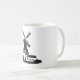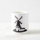 Eine schwarze Silhouette eines Gebäude aus Windmühle. Dieses Design sieht auf dieser Tasse wirklich effektiv aus