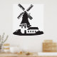 Eine schwarze Silhouette eines Gebäude aus Windmühle. Dieses Design sieht wirklich effektiv aus auf diesem Poster