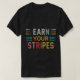 Ein kühn gestalteter T - Shirt mit dem Satz "Verdienen Sie Ihre Streifen" in einem dynamischen, vielfarbigen Display. Die lebendige Schrift fügt eine Touch von Spaß und Energie hinzu, die perfekt für diejenigen ist, die Herausforderungen annehmen und nach Leistung streben.