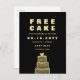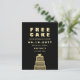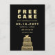 Ein moderner und lustiger "FREIER KUCHEN UND EINE HOCHZEIT AUF DEM SEITEN" Save the Date wedding Postkarte, um Ihre Gäste oben zu knacken. Die moderne Typografie der Ausrüstungsbeschreibungen mit und eine niedliche Kuchenillustration der Imitatgoldfolie auf einem schwarzen Hintergrund. Auf der Rückseite der Postkarte, die Ausrüstungsbeschreibungswahlen für weitere Einzelheiten einschließlich Raum für eine Rücksendeadresse. Personifizieren Sie den Entwurf, indem Sie den Text durch Ihre Details ersetzen. Treten Sie bitte mit dem Designer für alle mögliche Entwurfskundenbezogenheitsanträge in Verbindung.