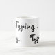 Das Tippen von schwarzen Buchstaben Coffee Tasse.