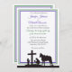 Schwarze Silhouetten einer Braut und ihr Cowboy-Bräutigam beten am Kreuz zusammen mit seinem treuen Steed. Der Hintergrund der Einladung ist weiß mit einem lila und grünen Trimm um den Textbereich. Es gibt einen benutzerdefinierbaren Text in grauem, lila und grünem Schriftart, in dem Sie alle Informationen zu Ihren Hochzeiten hinzufügen können. Auf der Rückseite der Betenden Braut und Cowboy-Bräutigam-Einladung ist der gleiche solide, weiße Hintergrund mit dem lila und grünen Trimm. Es gibt einen Kranz von grünen Blätter mit einem lila Herz unten. Im Inneren des Kranzes befindet sich ein Text in grauem Skript-Schriftart mit Schrift aus Genesis 2:18. Der Herr, Gott, sagte: "Es ist nicht gut für den Menschen, allein zu sein. Ich werde einen Helfer für ihn passend machen."