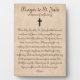 Diese Tafelplatte hat ein mächtiges Gebet zum Heiligen Jude in Zeiten des Leidens vor einem rustikalen braunen Hintergrund: Heiliger Apostel, Jude, treuer Knecht und Freund von Jesus, ich lege mich in deine Hände in dieser schwierigen Zeit. Hilf mir zu wissen, dass ich nicht allein bin. Bitte bete für mich, frag Gott, mir Trost für meine Sorgen zu geben, Tapferkeit für meine Ängste und Heilung für mein Leid. Frag unserem liebenden Gott, meinen Glauben zu stärken und mir den Mut zu geben, Seinen Willen für mein Leben zu akzeptieren. Vielen Dank, St. Jude, für die Hoffnung, die Sie allen bieten, die an Sie glauben. Amen