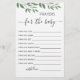 Kaufen Sie diese bearbeitbare Karte und genießen Sie hochwertige Gebete für Ihr Baby! Dies ist eine Kartenvorlage, Sie können die Karte personalisieren, ändern Sie den Text, wie Sie möchten! Baby Dusche Aktivitäten! Neutrale Bewertung des Geschlechts Grüne Pflanze Design.