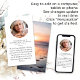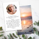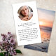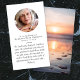 Dieses Gedenkgedicht kann bei einer Feier des Lebens oder einer Beerdigung als Pfand gegeben oder als besondere Hommage an diejenigen geschickt werden, die nicht teilnehmen konnten. Diese Karte kann mit einem beliebten Foto und Ihrer Wahl von Gebet oder Gedicht personalisiert werden. Das Foto dient zur Veranschaulichung und kann in ein eigenes umgewandelt werden.