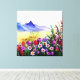 Gebiet der Wildblumen am Fuße eines Berges Leinwanddruck