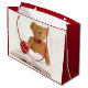 Teddybär mit einem offenen Buch und einem Apfel, entweder für den Lehrer oder als der niedlichen Geschenktasche des Lehrers