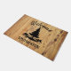 Doormat für die Zuhause. Silhouette von Bergen und Palmen, auf rustikalem Holzfußboden nach Ihrem Familiennamen gestaltet. Ideal für Ihre Zuhause/Ferien in den Bergen. Oder passen Sie Ihren Text für jede Verwendung an.
