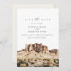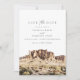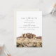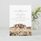 Save the Date zeigt es ein Aquarellbild der Superstition Mountains in der Nähe von Phoenix, Arizona. Editieren Sie einfach *most* um Ihren Wünschen gerecht zu werden und fügen Sie Ihr eigenes Foto oder Ihre eigenen Fotos mit Ihrer Hochzeitswebsite zur Rückseite hinzu.