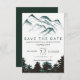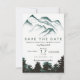 Schicken Sie Ihre Save the Date mit diesem modernen, tiefgrünen Wasserfarbengebirge und Pinienwald Hochzeit mit handgemalten Bergen mit moderner und einfacher Typografie.