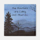 Eine Aquarellfarbe eines Abends Bergsicht schmückt diesen Magneten "Die Berge rufen und ich muss gehen"! Passen Sie den Text an, wenn Sie möchten!