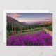 Dieses phantastische Getty Images Foto besticht durch rötlich-lila Wildblumen mit Feueralgen in einer Bergwelt bei Sonnenaufgang.