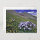 Gebirge und Wildblumen auf der Alm, blau Postkarte