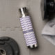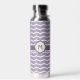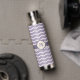 Genießen Sie ein lustiges Zickzackmuster mit einem hübschen blüh, während sich der beige Zickzack in einer von Lotusblättern inspiriert Form nach oben und unten kurbelt. Dieser geblüht Zickzack sitzt auf einem angenehmen lila Hintergrund und sorgt für einen beruhigenden Kontrast. Passen Sie das Monogramm mit Ihrem Initial an, um eine Wasserflasche zu erstellen, die einzigartig für Sie ist.