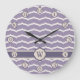 Genießen Sie ein lustiges Zickzackmuster mit einem hübschen blüh, während sich der beige Zickzack in einer von Lotusblättern inspiriert Form nach oben und unten kurbelt. Dieser geblüht Zickzack sitzt auf einem angenehmen lila Hintergrund und sorgt für einen beruhigenden Kontrast. Passen Sie die Initialen auf dieser Uhr an, um eine Dekoration für Ihre Zuhause zu machen, die für Sie einzigartig ist.