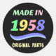 Geboren 1958, farbenfrohe Textgestaltung Runder Aufkleber